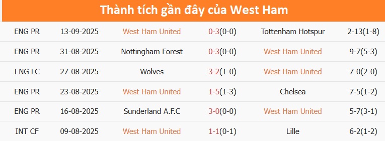 Tổng bàn thắng cả trận: 8/10 trận gần đây của West Ham vượt mốc tổng bàn thắng. Họ lọt lưới 3 bàn trở lên ở 4/5 trận vừa qua.