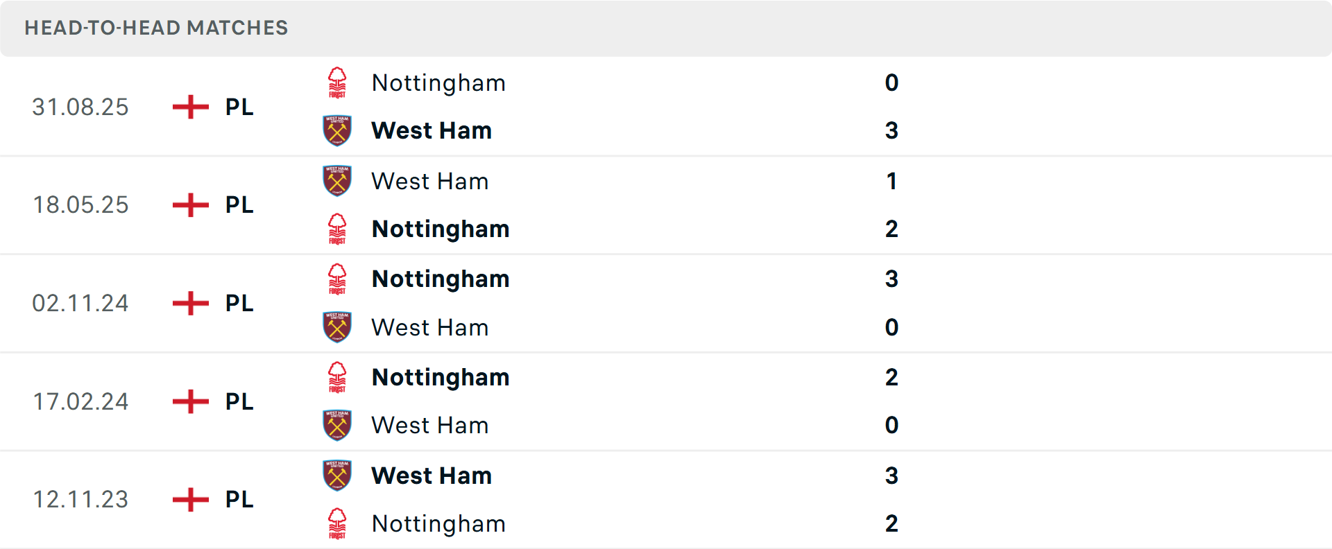 Tỷ lệ trận đấu: West Ham thắng 3 và thua 4 trong 7 trận gần đây theo tỷ số châu Á. Phía bên kia, Nottingham trải qua 4 trận liên tiếp không thắng (3 thua).