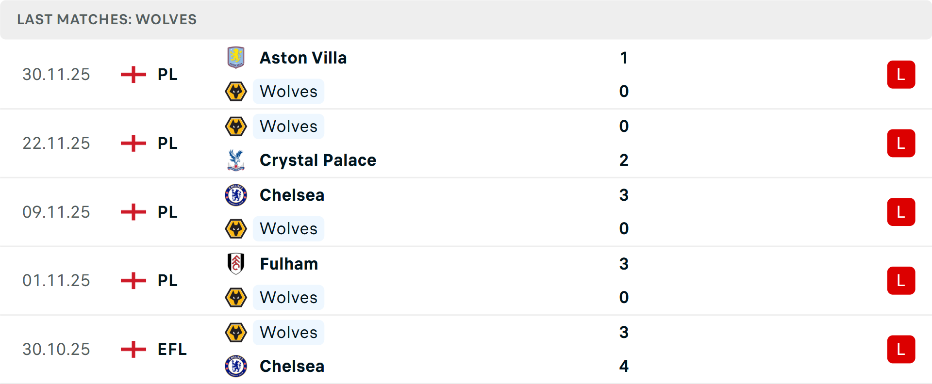 Wolves đang chìm sâu dưới đáy bảng xếp hạng với vỏn vẹn 2 điểm và chuỗi 7 trận thua liên tiếp. Dù đã thay HLV (Rob Edwards thế chỗ Vitor Pereira), Bầy sói vẫn chưa thể ghi bàn ở cả 4 trận gần đây, trong khi hàng thủ luôn bị khai thác. Sự xuất hiện của Edwards chưa mang lại hiệu quả và họ đang hướng tới nguy cơ tái hiện mùa giải tệ hại 2011-12.