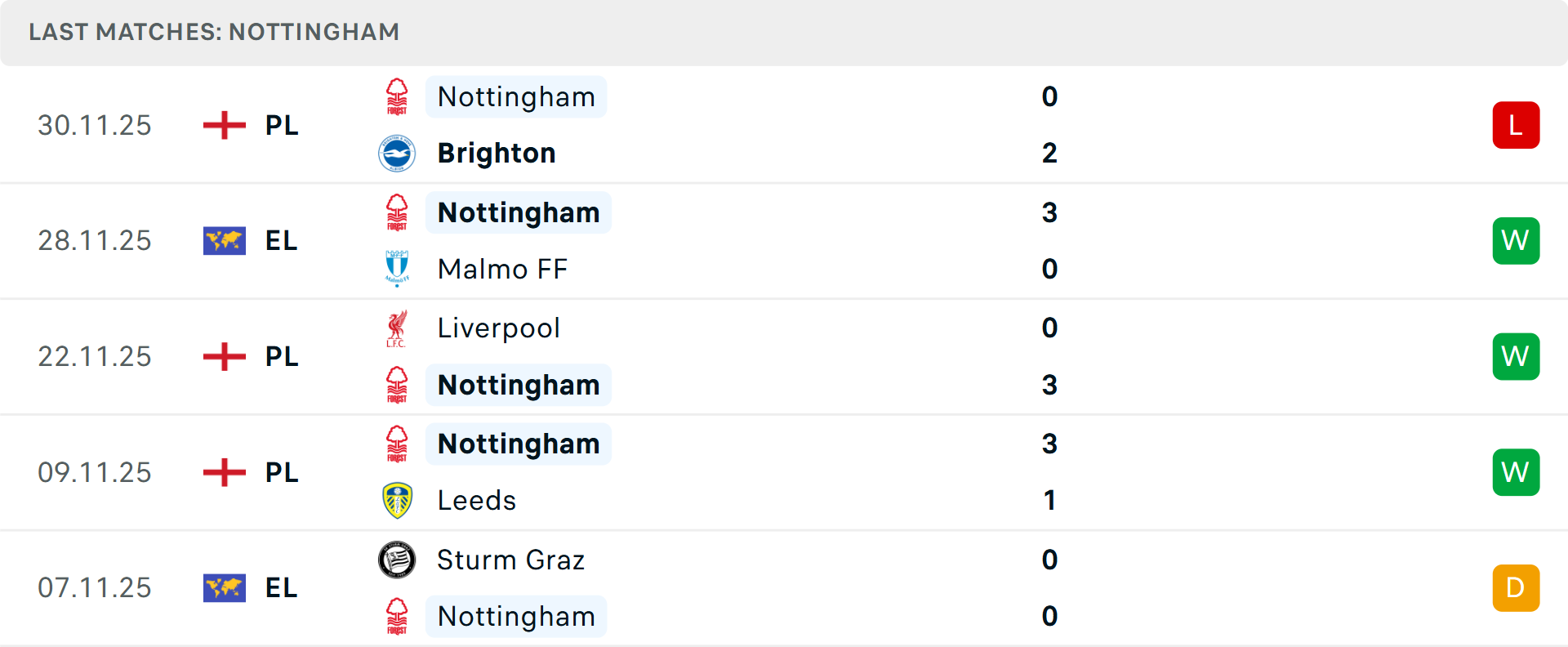 Trong khi đó, Nottingham Forest đã ổn định hơn rất nhiều dưới thời HLV Sean Dyche. Sau chuỗi 3 trận thắng liên tiếp, họ chỉ thua 2/8 trận gần nhất. Đội khách đang ở vị trí thứ 16 và thể hiện sự vững chắc đáng kể trên sân khách, đặc biệt là với chuỗi giữ sạch lưới liên tiếp gần đây (bao gồm cả chiến thắng 3-0 trước Liverpool). Morgan Gibbs-White cũng đang có phong độ tốt với 3 bàn trong 5 trận gần nhất.