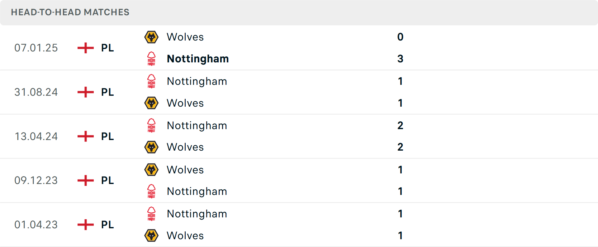 Tổng bàn thắng cả trận: 4/6 cuộc đối đầu trước đó giữa hai đội dưới mốc tổng bàn thắng, tương tự là 2 trận mới nhất của Wolves và trận vừa qua của Nottingham.