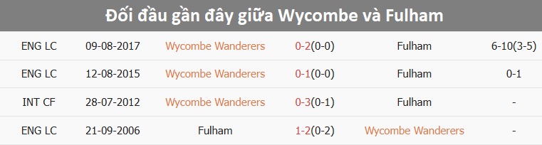 Tỷ lệ trận đấu: Wycombe thắng 3 và hoà 1 trong 4 trận gần đây theo tỷ số châu Á. Về phần mình, Fulham trải qua 5 trận thua liên tiếp.