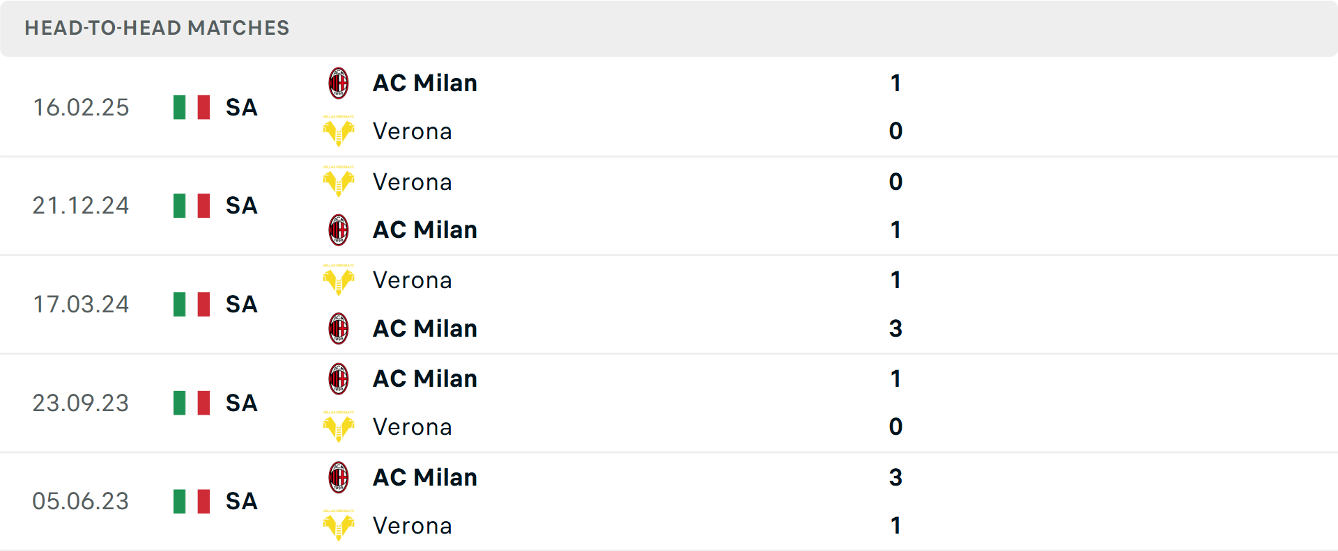Tỷ lệ trận đấu: AC Milan chỉ thắng Verona 1/4 cuộc đối đầu mới nhất theo tỷ số châu Á. Rossoneri cũng thua cả 2 trận mới nhất. Ngược lại, Verona toàn thắng 2 trận vừa qua.