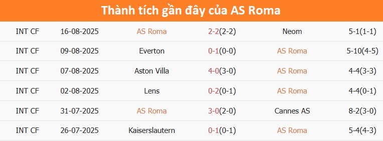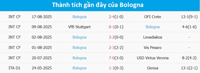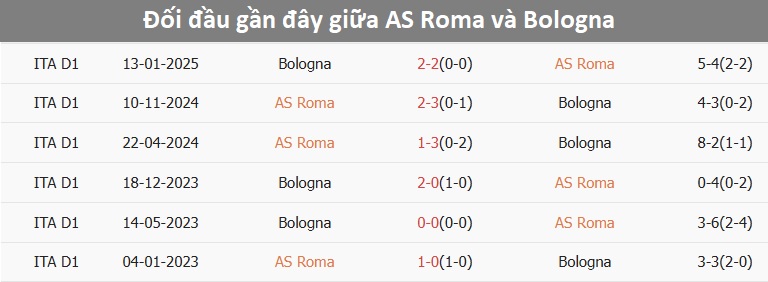 Tỷ lệ trận đấu: AS Roma thắng 6/8 trận gần đây theo tỷ số châu Á. Về phần mình, Bologna thua trận giao hữu mới nhất cũng như 2 trận chính thức trước đó.