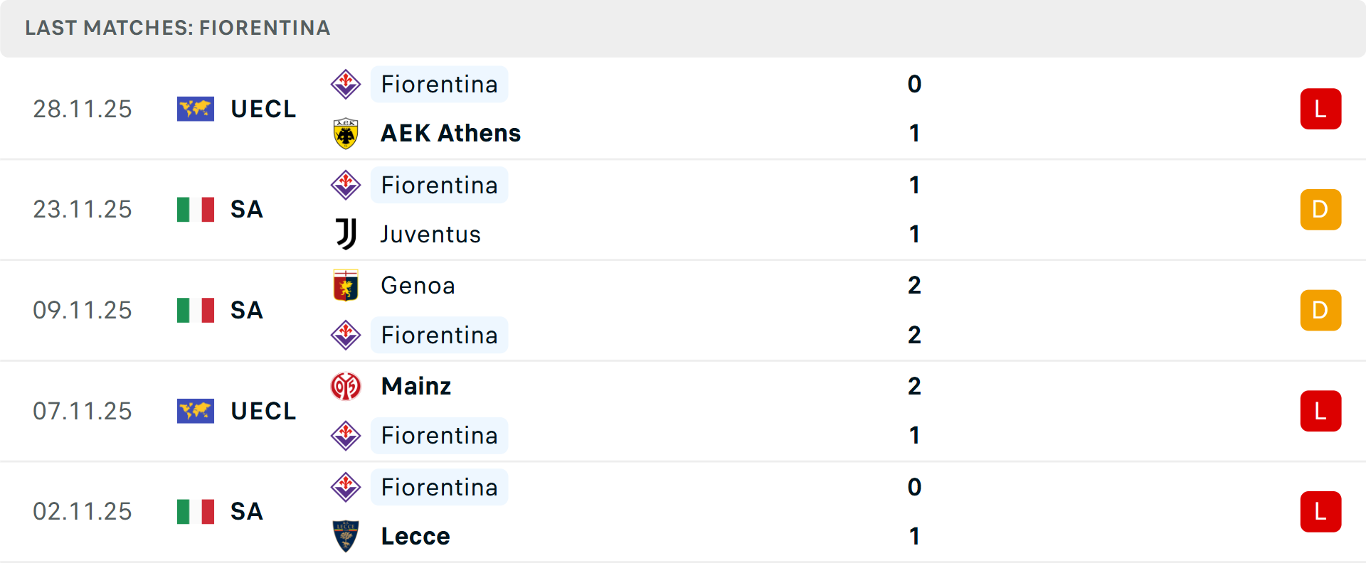 Trong khi đó, Fiorentina của HLV Paolo Vanoli thậm chí còn tệ hơn. Họ đang nằm gần cuối bảng xếp hạng và đã không thắng tại giải VĐQG kể từ tháng 5, kéo dài chuỗi không thắng trên mọi đấu trường lên 7 trận. Viola đang gặp vấn đề ở cả tấn công lẫn phòng ngự, đặc biệt là việc thủng lưới nhiều nhất từ các tình huống cố định (10 bàn).