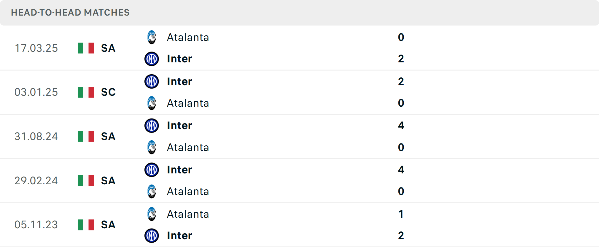 Dù lịch sử đối đầu ủng hộ Inter với chuỗi 13 trận bất bại trước Atalanta, nhưng đội bóng thành Bergamo đang hồi sinh mạnh mẽ dưới thời tân HLV Raffaele Palladino. Với 4 chiến thắng liên tiếp trên sân nhà và tinh thần lên cao sau khi đánh bại Chelsea tại Champions League, họ không còn là đối thủ dễ bị bắt nạt.