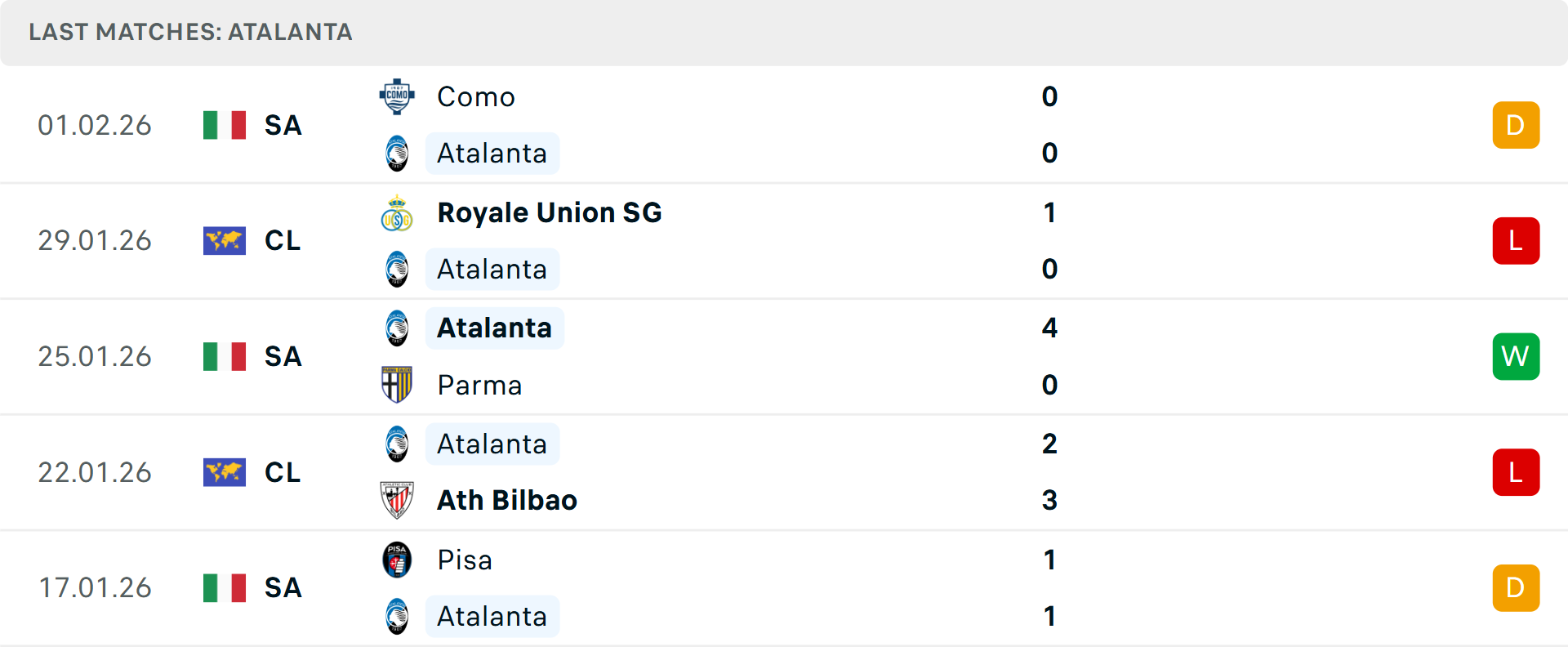 Atalanta đang sở hữu phong độ sân nhà rất ấn tượng khi thắng 7/9 trận dưới thời huấn luyện viên Palladino. Dù vừa trải qua một trận đấu vắt kiệt sức trước Como trong thế thiếu người, tinh thần của "La Dea" vẫn đang lên cao nhờ sự chắc chắn của hàng thủ và phong độ xuất sắc từ thủ thành Carnesecchi. Tuy nhiên, lịch sử lại không ủng hộ đội bóng thành Bergamo khi cơn khát danh hiệu quốc nội của họ đã kéo dài từ năm 1963.