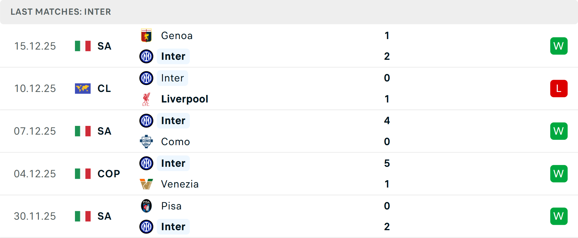 Sau thất bại đáng tiếc ở trận chung kết mùa trước, Inter Milan dưới thời tân HLV Cristian Chivu đang thể hiện sức mạnh áp đảo tại Serie A với 11 chiến thắng sau 15 vòng đấu, vươn lên chiếm ngôi đầu bảng. Đội bóng áo xanh-đen sở hữu hàng công mạnh nhất giải đấu và một Lautaro Martinez đang đạt phong độ cực cao với 4 bàn thắng trong 3 trận gần nhất.