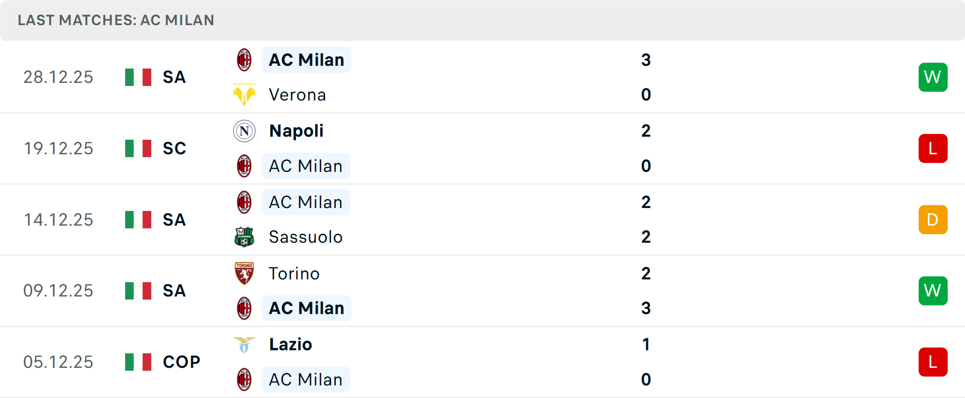AC Milan làm khách tại Cagliari với mục tiêu duy trì thế bám đuổi trong cuộc đua vô địch Serie A. Sau khi dừng bước tại Siêu cúp Italia, đoàn quân của HLV Massimiliano Allegri đã tìm lại niềm tin bằng chiến thắng tưng bừng trước Verona để khép lại năm 2025. Với chuỗi 15 trận bất bại liên tiếp và sự ổn định từ bộ khung Maignan, Modric, Pulisic, Rossoneri đang cho thấy bản lĩnh của một ứng viên nặng ký cho Scudetto.