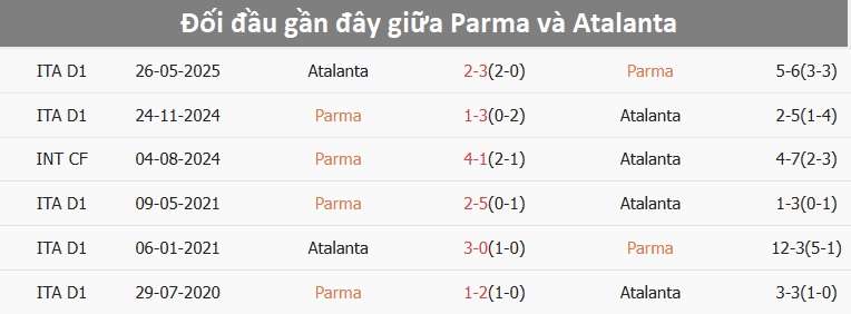 Tổng bàn thắng cả trận: Cả 2 trận vừa qua của Parma đều dưới mốc tổng bàn thắng. Điều tương tự cũng xảy ra ở trận mới nhất của Atalanta.