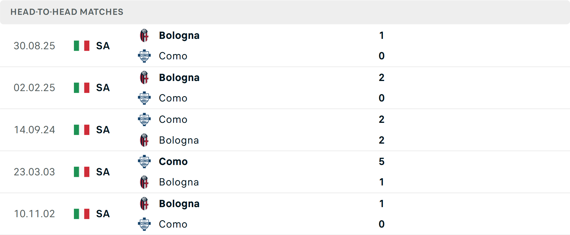 Tỷ lệ trận đấu: Como toàn thắng 3 trận gần đây theo tỷ số châu Á, xa hơn là 7/10 trận. Về phần mình, Bologna trải qua 4 trận thua liên tiếp, chỉ thắng 2/10 trận trở lại đây.