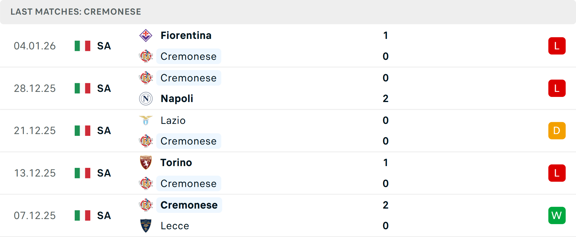 Tổng bàn thắng cả trận: Cả 4 trận vừa qua của Cremonese dưới mốc tổng bàn thắng và đều không ghi bàn. Cả 3 cuộc đối đầu trước đó đều có kịch bản tương tự.