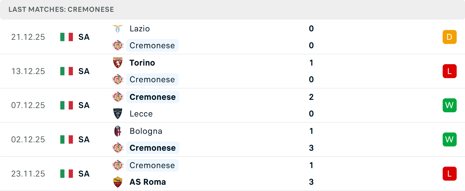 Trong khi đó, Cremonese dưới bàn tay nhào nặn của Davide Nicola đang trở thành "kẻ diệt khổng lồ" khó chịu. Đứng thứ 11 với lối chơi kỷ luật, họ từng cầm hòa Lazio và đánh bại Milan. Với điểm tựa sân nhà Giovanni Zini cùng sự nguy hiểm của lão tướng Jamie Vardy, Cremonese đủ sức giăng bẫy nhà ĐKVĐ. Trong bối cảnh Napoli mệt mỏi sau chuyến đi dài, một thế trận giằng co và chặt chẽ nhiều khả năng sẽ dẫn đến kết quả chia điểm không bàn thắng.
