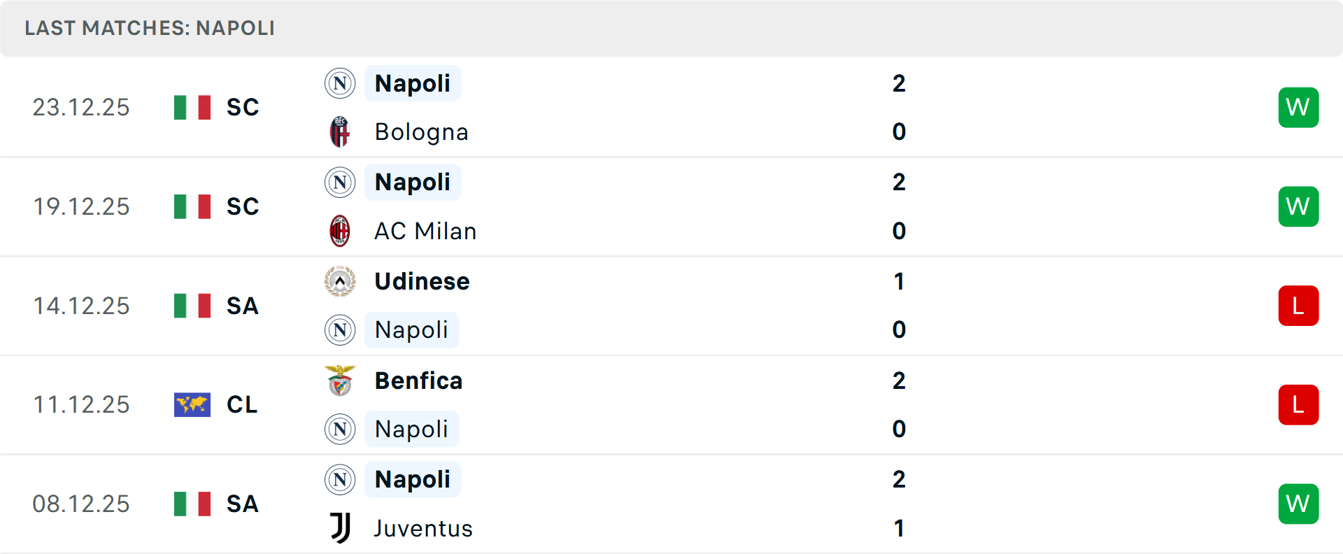 Napoli vừa trở về từ Riyadh với chức vô địch Siêu cúp Ý sau chiến thắng thuyết phục 2-0 trước Bologna. Dù đang thăng hoa với danh hiệu mới, thầy trò Antonio Conte lại đối mặt với bài toán thể lực và phong độ sân khách nghèo nàn khi đã thua tới 7 trận xa nhà mùa này. Việc thiếu vắng hàng loạt trụ cột như De Bruyne, McTominay hay thủ thành Meret do chấn thương khiến sức mạnh của Napoli bị ảnh hưởng đáng kể.