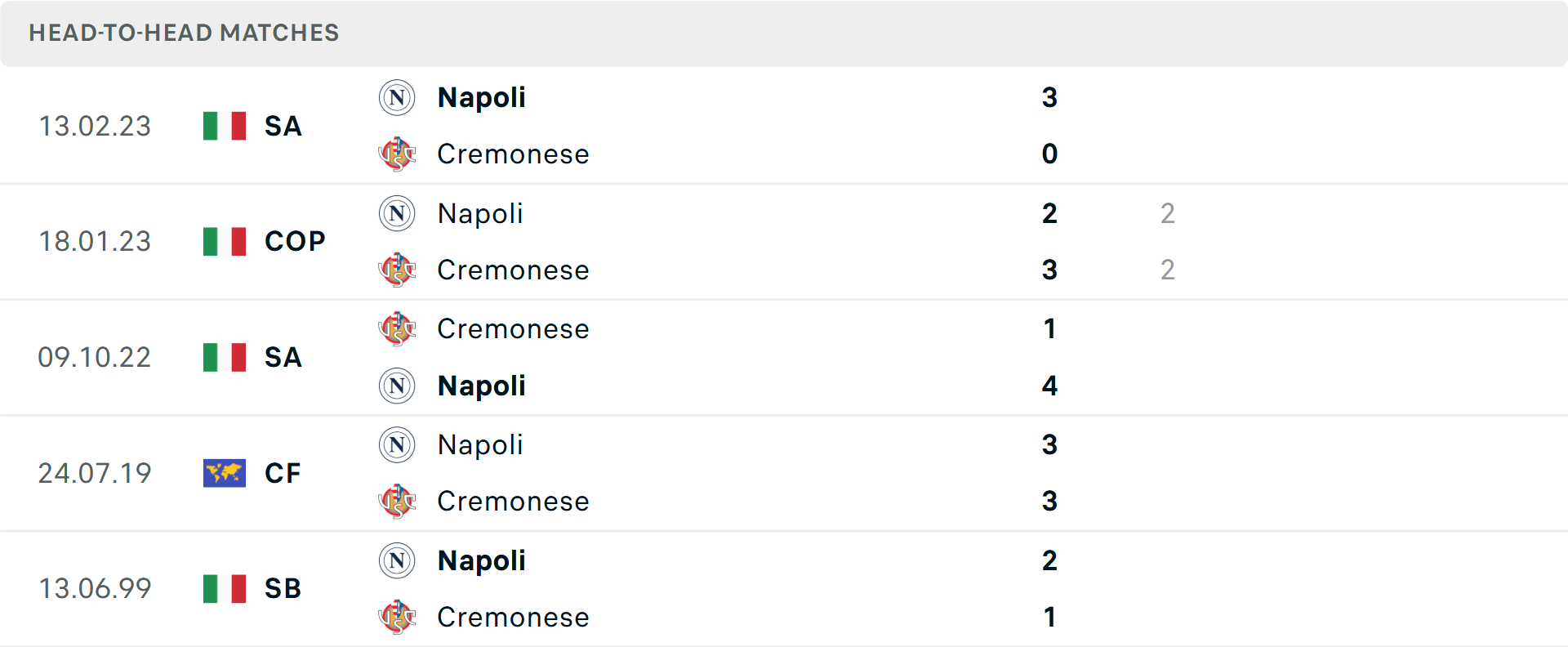 Tỷ lệ trận đấu: Cremonese thắng 3/4 trận vừa qua theo tỷ số châu Á. Về phần mình, Napoli cũng thắng 2 trận mới nhất sau 2 trận thua liên tiếp.
