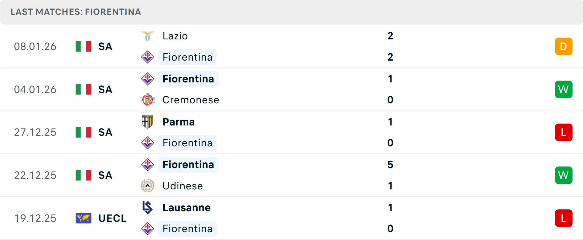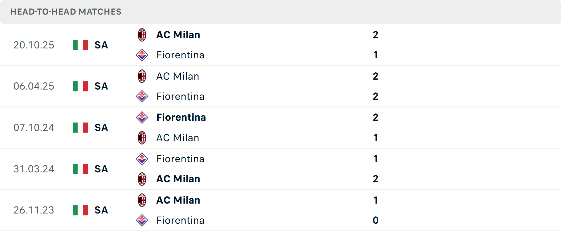 Dù đang đứng áp chót bảng xếp hạng, Fiorentina bắt đầu cho thấy những dấu hiệu hồi sinh với 7 điểm sau 4 trận gần nhất. Tuy nhiên, điểm yếu cố hữu của thầy trò HLV Paolo Vanoli là khả năng bảo vệ thành quả khi họ đã đánh rơi tới 18 điểm từ thế dẫn bàn mùa này. Ngược lại, AC Milan dưới thời Max Allegri đang sở hữu bản lĩnh cực kỳ lỳ lợm. Rossoneri là đội duy nhất tại Serie A chưa nếm mùi thất bại trên sân khách mùa này (5 thắng, 3 hòa).