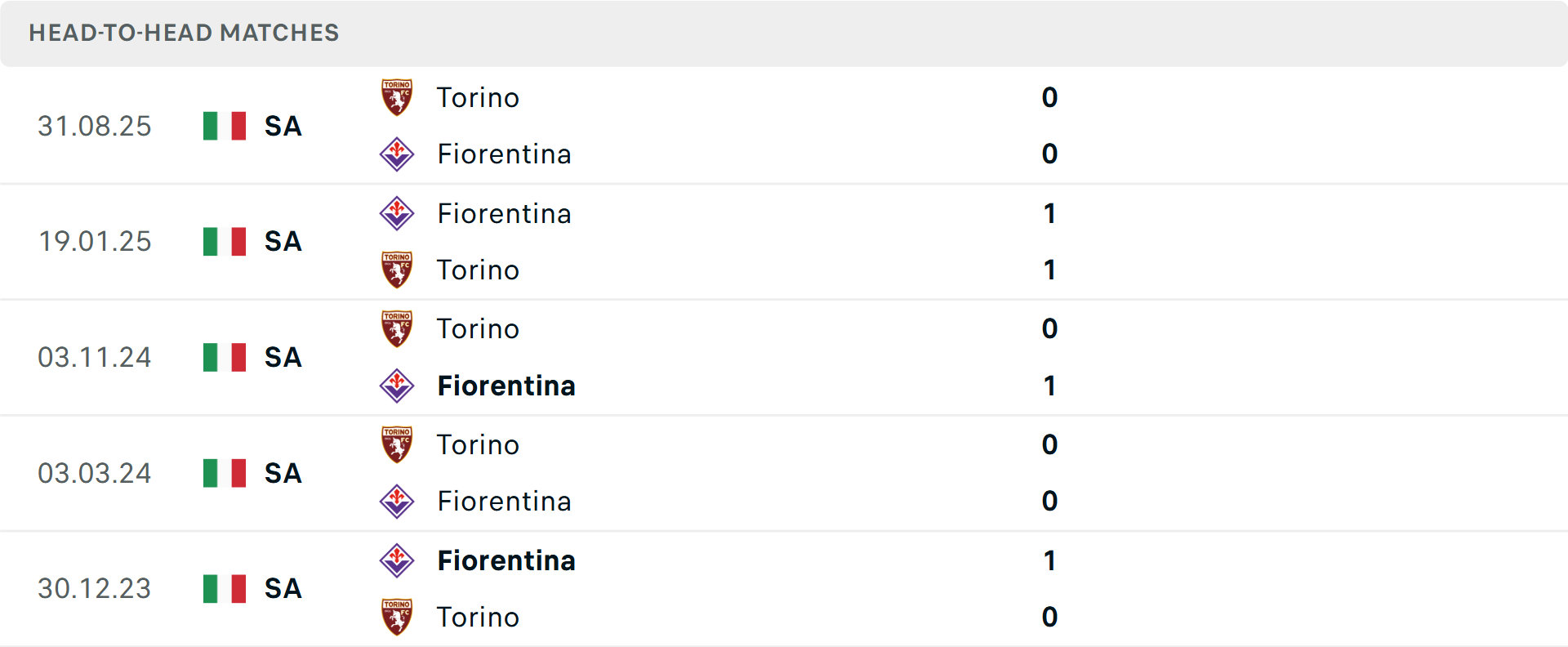 Tổng bàn thắng cả trận: Cả 4 trận gần đây của Fiorentina đều vượt mốc tổng bàn thắng, không giữ sạch lưới. Điều tương tự cũng xảy ra ở 6/9 trận trước đó của Torino.