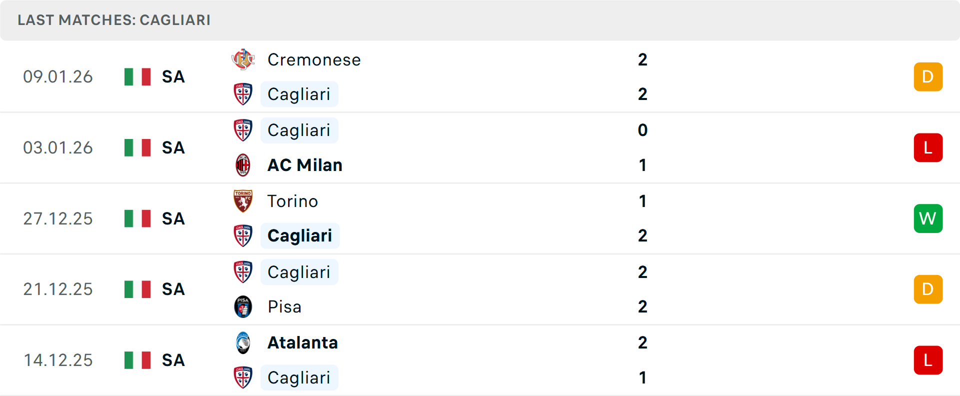 Trong khi đó, Cagliari dưới sự dẫn dắt của Fabio Pisacane lại là "vua lội ngược dòng" khi giành được tới 11 điểm từ thế bị dẫn trước. Đội bóng xứ đảo vừa có màn chia điểm đầy tinh thần trước Cremonese nhờ sự tỏa sáng của tài năng trẻ Yael Trepy.