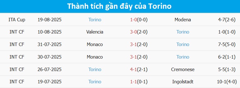 Inter Milan bước vào trận đấu này với Esposito và Calhanoglu bị treo giò, nhưng HLV Chivu vẫn có đội hình đủ mạnh để tìm kiếm chiến thắng trước Torino. Sau 3 trận giao hữu khá tích cực gần đây (thắng 2, hoà 1), Nerazzurri cho thấy đã sẵn sàng nhập cuộc một cách sung mãn nhất, trong đó Thuram - Lautaro Martinez vẫn là lựa chọn số một trên hàng công.