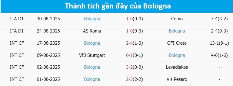 Bologna chắc chắn là đối thủ đáng gờm sau khi chỉ thua AC Milan 1/4 cuộc đối đầu gần đây. Tuy nhiên, sau khi bán đi một số cầu thủ chủ chốt, dường như đội bóng này đã giảm bớt mức độ nguy hiểm. Bằng chứng là sau khi thua AS Roma, họ chỉ thắng được Como với tỷ số tối thiểu và không ít lần thoát hiểm. Lần này, trước một AC Milan được củng cố vững chắc hơn và sự sắc bén trên hàng công, Bologna khó đứng vững.