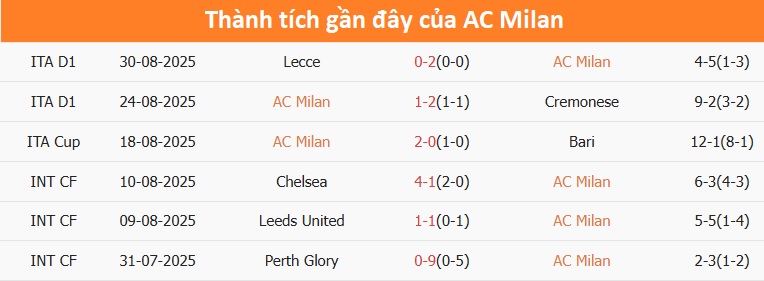 Tỷ lệ trận đấu: AC Milan vừa thắng trận mới nhất theo tỷ số châu Á. Về phần mình, Bologna thắng 1 và thua 1 trong 2 trận chính thức từ đầu mùa.