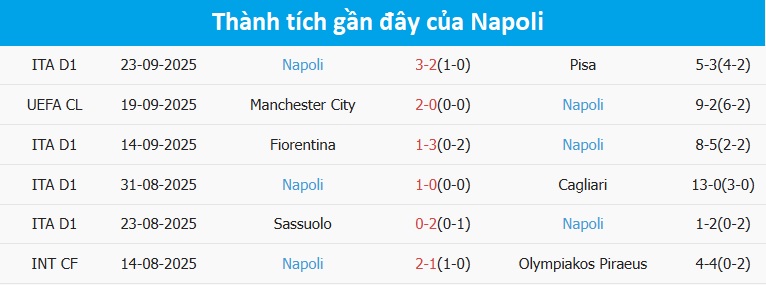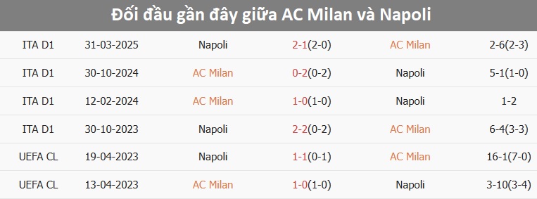 Tỷ lệ trận đấu: AC Milan toàn thắng 4 trận gần đây theo tỷ số châu Á. Phía bên kia, Napoli thua 3/4 trận mới nhất.