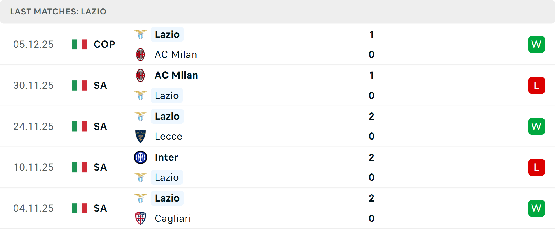 Tổng bàn thắng cả trận: Lazio trải qua 8 trận liên tiếp dưới mốc tổng bàn thắng, giữ sạch lưới 6 trong số này.