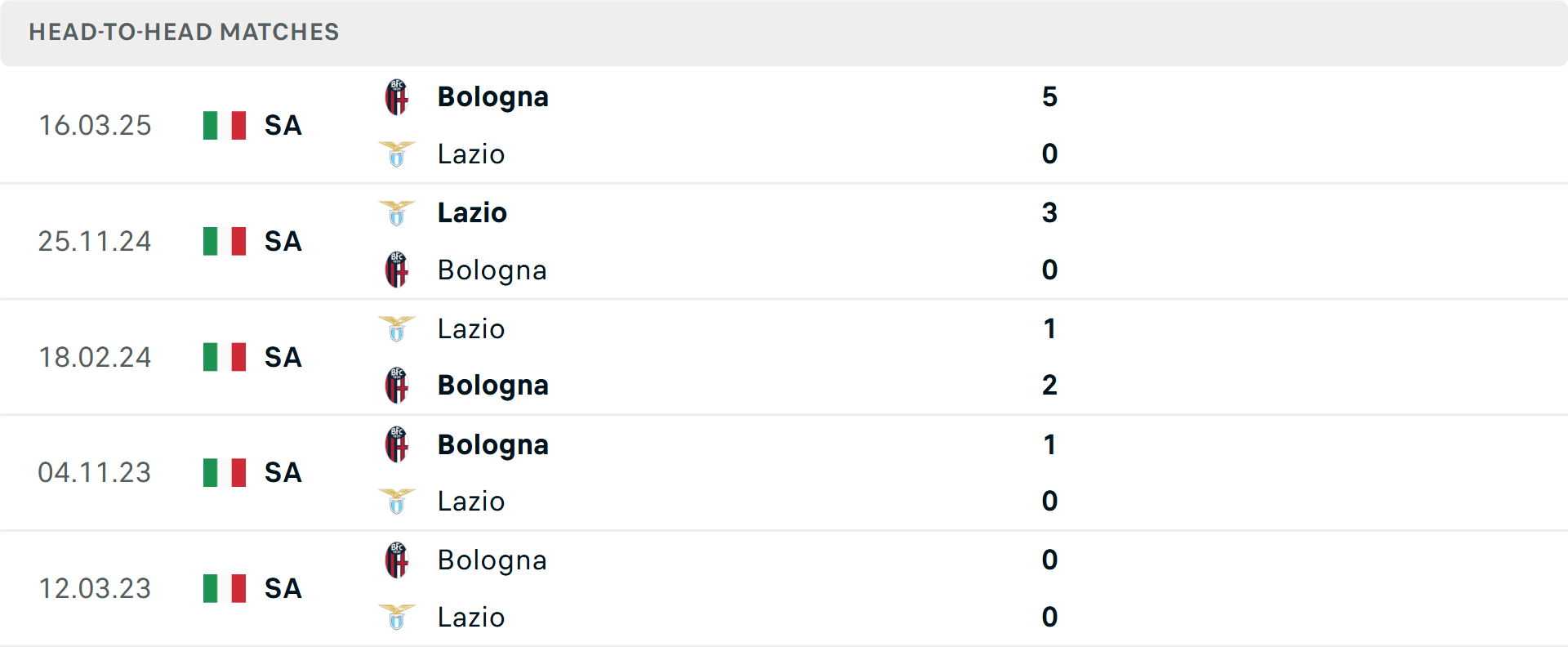 Tỷ lệ trận đấu: Lazio toàn thắng 4 trận sân nhà gần đây theo tỷ số châu Á. Phía bên kia, Bologna không thắng 2 trận mới nhất.