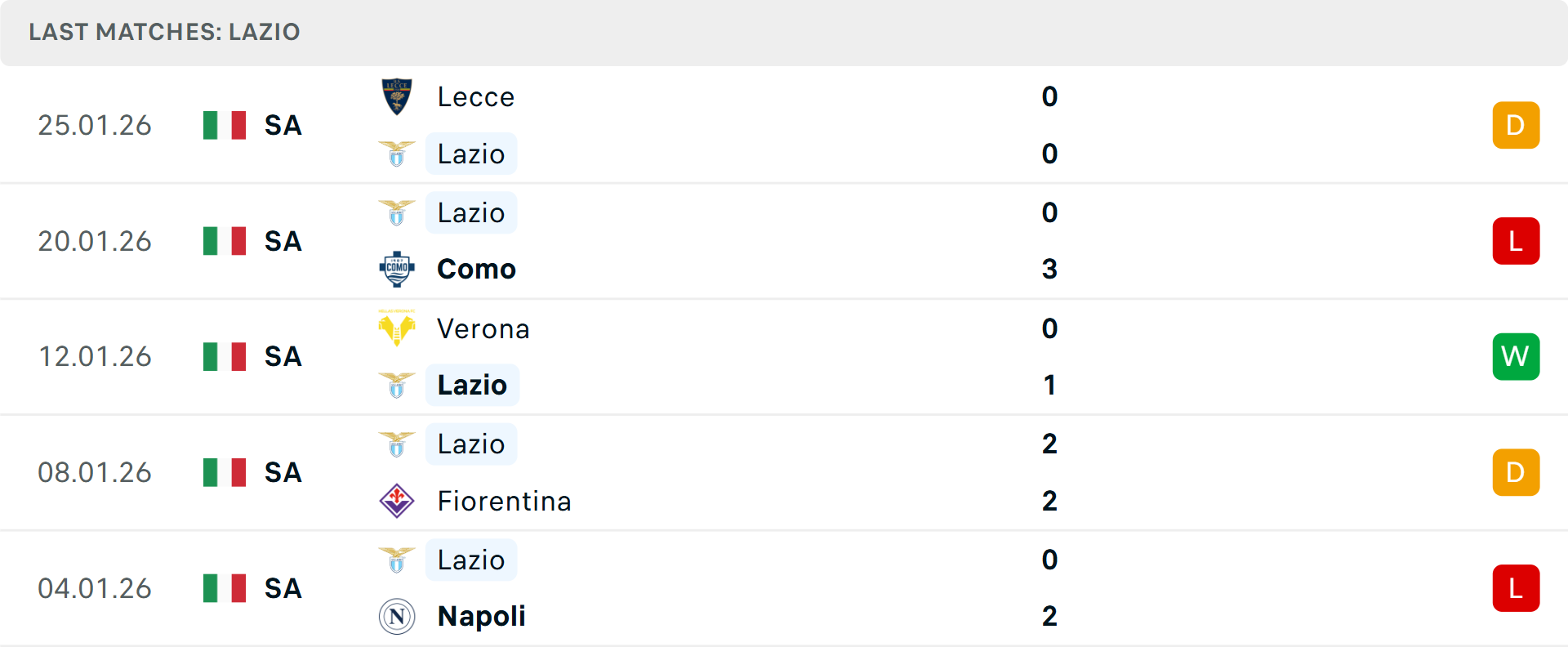Lazio đang rơi vào khủng hoảng khi tụt xuống vị trí thứ 9, khiến HLV Maurizio Sarri phải công khai chỉ trích sự thiếu tham vọng của đội nhà. Với việc mất đi các trụ cột và chưa biết mùi chiến thắng tại Olimpico trong năm nay, áp lực đè nặng lên vai đội bóng thủ đô.