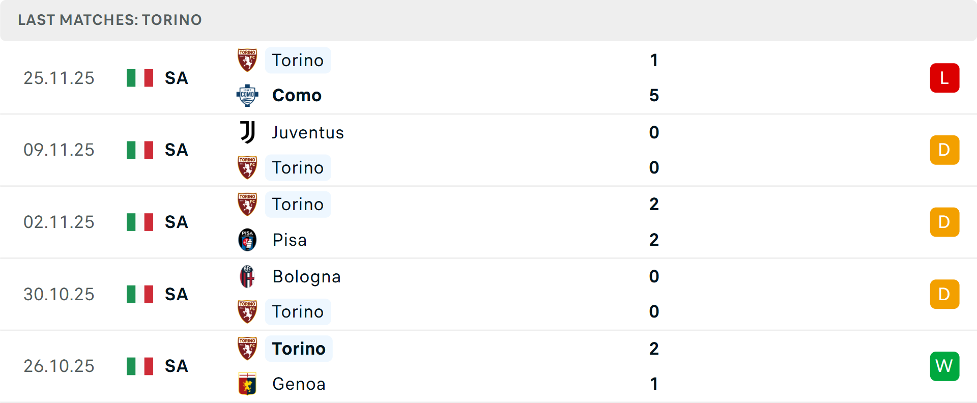 Ngược lại, Torino bước vào trận đấu với tâm lý nặng nề sau thất bại tan nát 1-5 trước Como, cho thấy sự thiếu ổn định và khả năng sụp đổ hàng thủ. Mặc dù Granata có thành tích đối đầu tốt gần đây (chỉ thủng lưới 1 lần/6 trận), nhưng sự bấp bênh hiện tại có thể khiến họ trả giá.