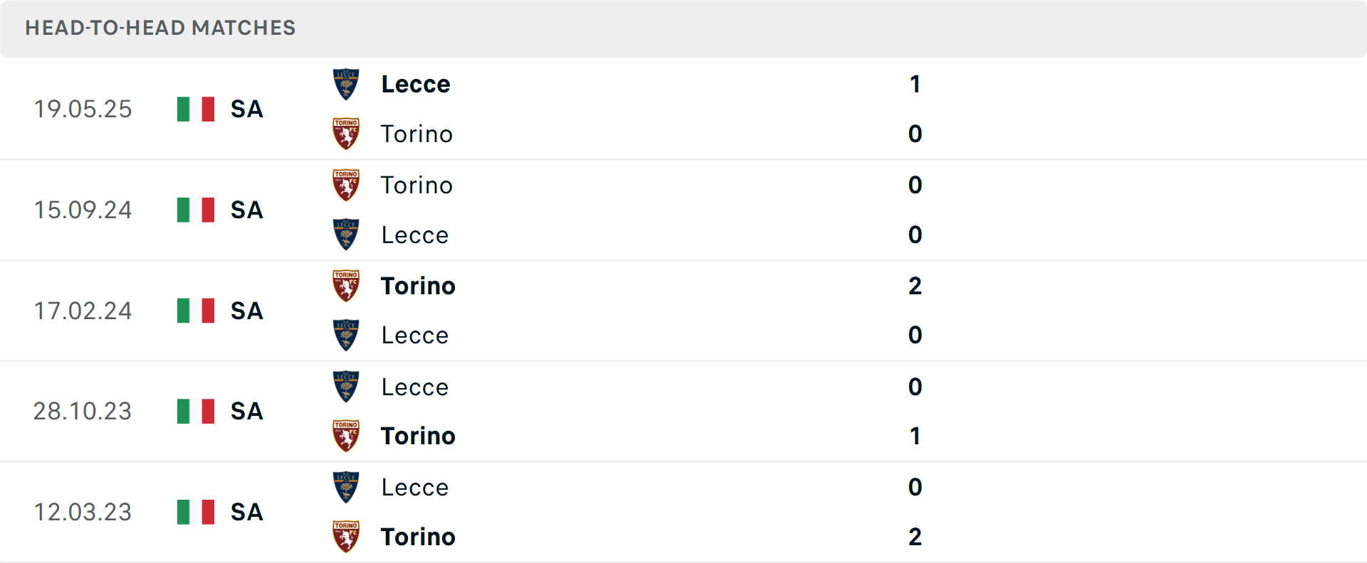 Tỷ lệ trận đấu: Lecce thắng 2/4 trận vừa qua theo tỷ số châu Á, chỉ thua 1. Phía bên kia, Torino thua 2/3 trận gần đây.