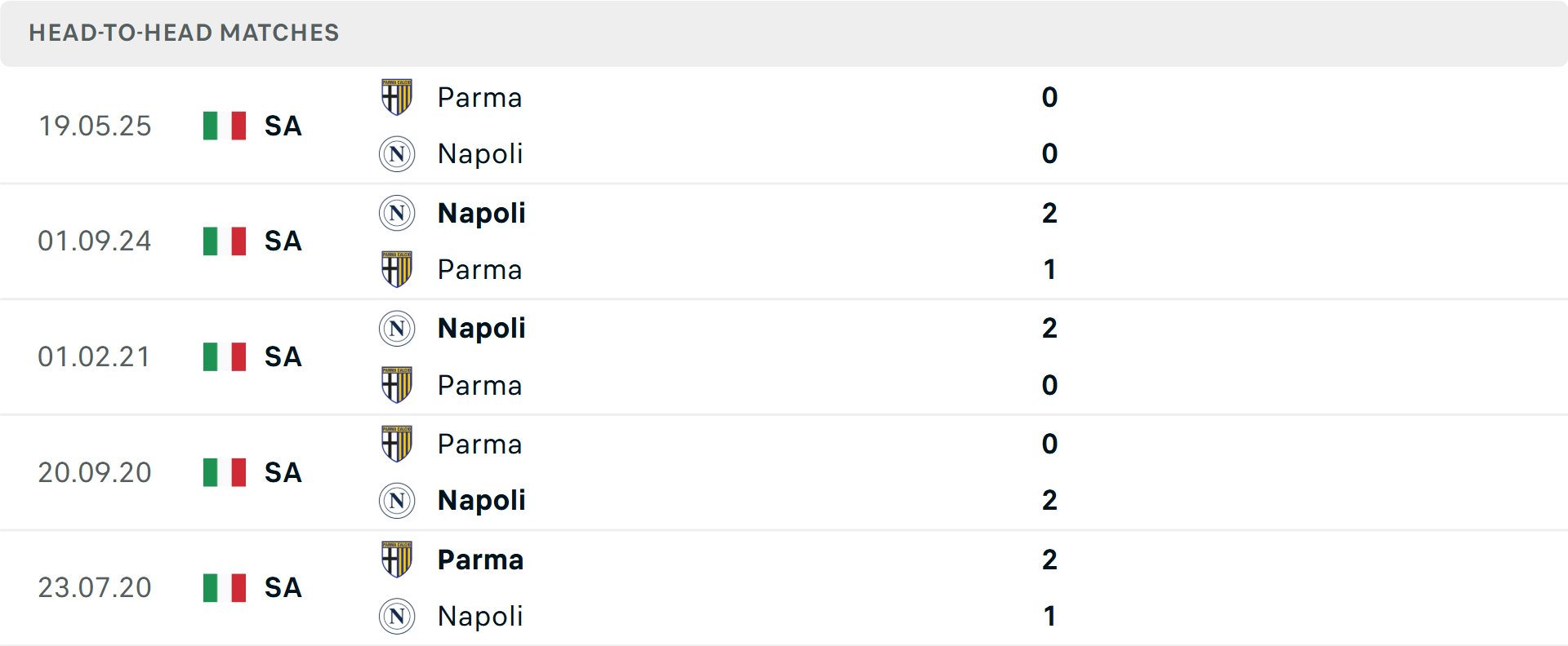 Tổng bàn thắng cả trận: 3/4 cuộc đối đầu mới nhất giữa hai đội dưới mốc tổng bàn thắng, tương tự là 6/10 trận gần đây của Napoli và 5/6 trận của Parma.