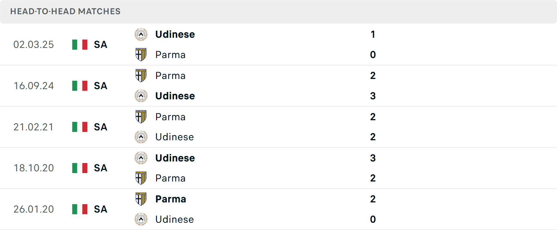Tổng bàn thắng cả trận: 6/8 cuộc đối đầu trước đó giữa hai đội vượt mốc tổng bàn thắng. Cả 4 trận gần đây của Parma và trận mới nhất của Udinese cũng diễn ra tương tự.