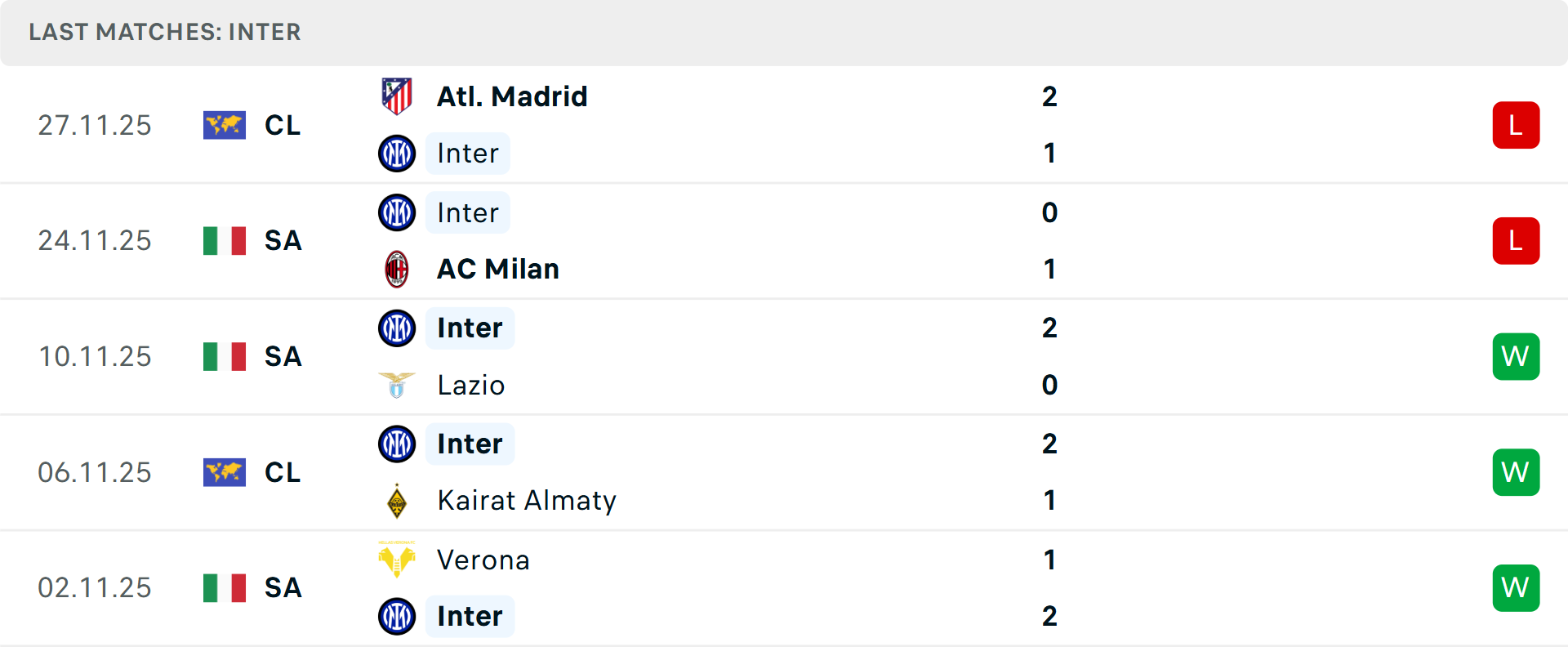 Inter Milan đang trải qua giai đoạn khó khăn sau khi thua liền hai trận quan trọng: trận derby Milan trước AC Milan và thất bại ở Champions League trước Atletico Madrid. Điều này khiến Nerazzurri rơi xuống vị trí thứ tư và chịu áp lực lớn phải giành trọn 3 điểm trước các đối thủ yếu hơn.