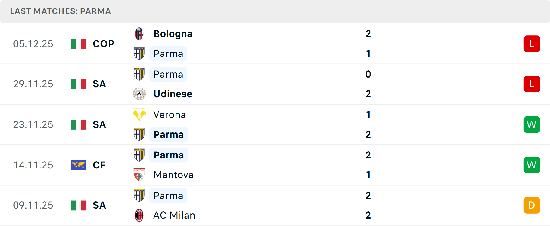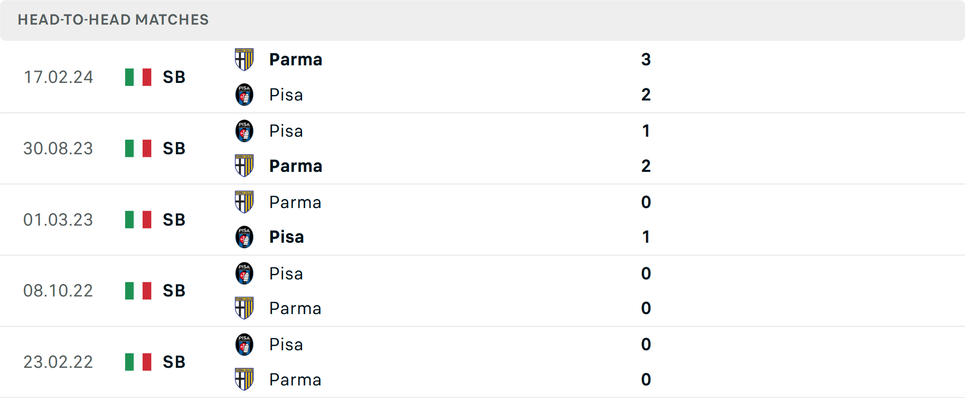 Trong khi đó, Parma đang đứng thứ 17 và có phong độ sân khách khá tệ, dù vừa giành chiến thắng 2-1 quan trọng trước Hellas Verona. Đây là chiến thắng sân khách duy nhất của họ mùa này. Lịch sử đối đầu lại nghiêng về Parma khi họ đã thắng cả hai lần gặp Pisa ở Serie B mùa trước (2023-2024), chấm dứt chuỗi 5 trận không thắng trước đó.