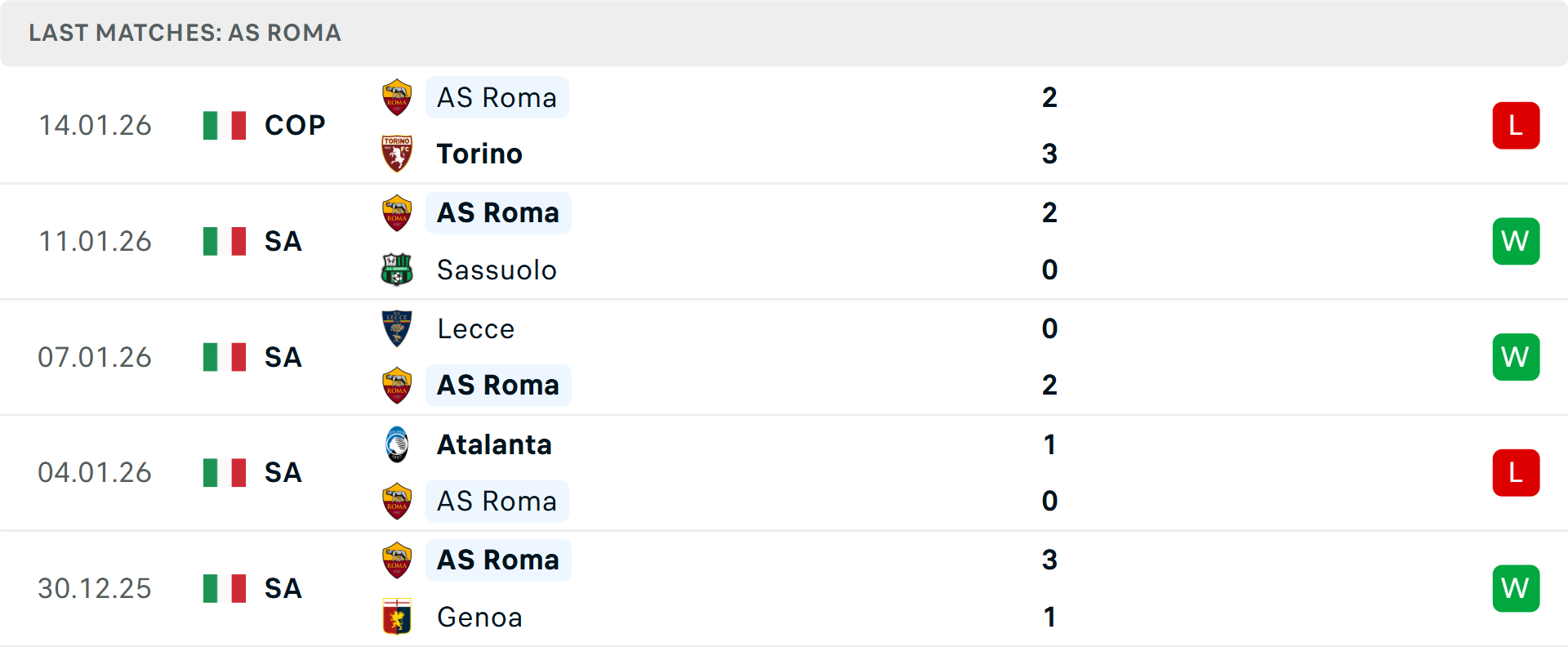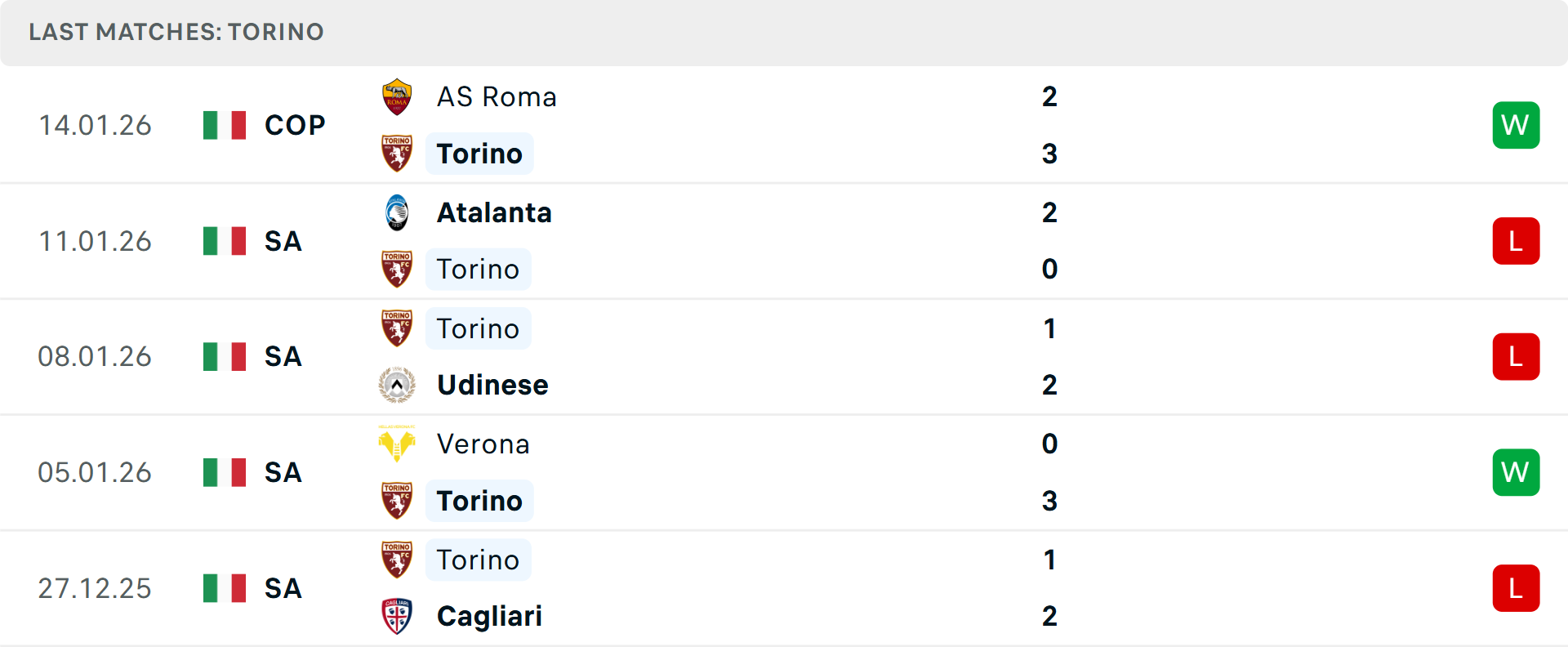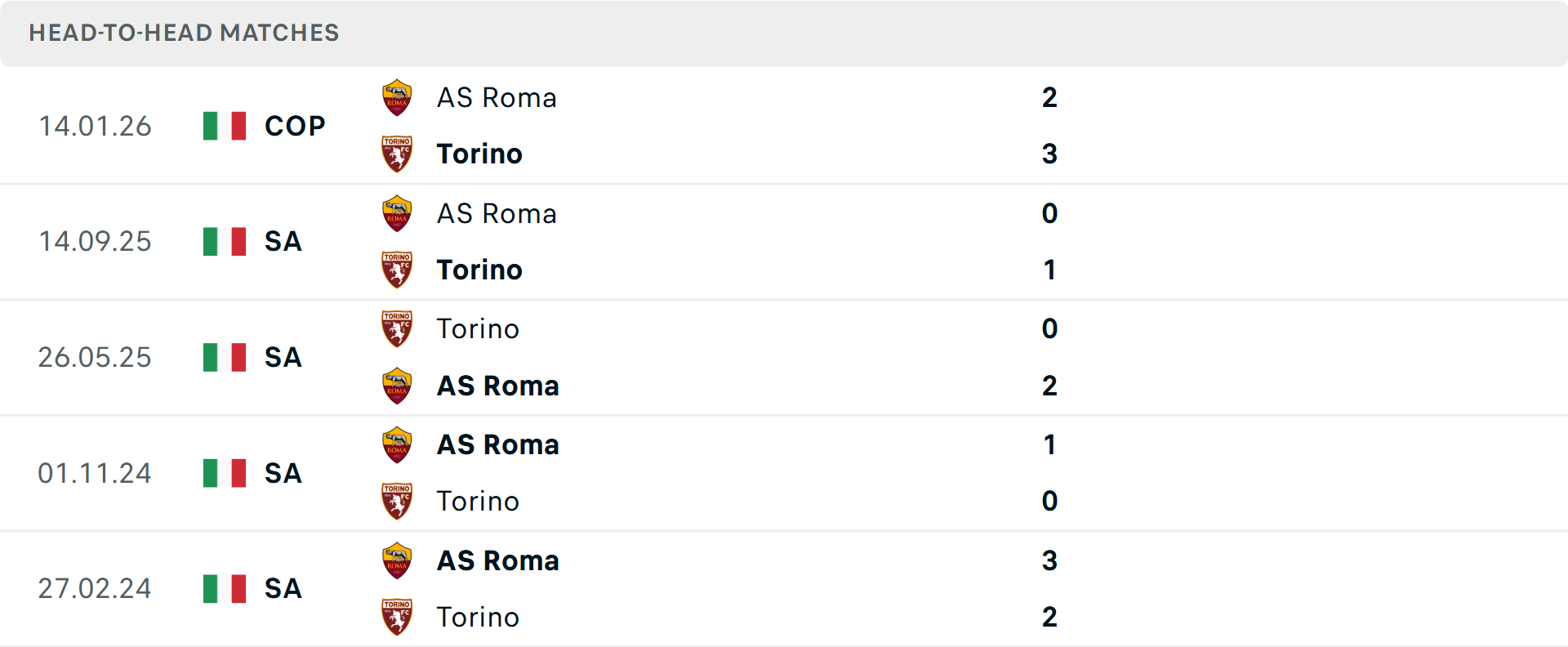 Chỉ vài ngày sau khi thua sốc tại Coppa Italia, AS Roma sẽ gặp lại Torino ở vòng 21 Serie A. Toro vừa khiến tất cả ngỡ ngàng khi đánh bại Roma ngay tại Olimpico nhờ sự tỏa sáng của Che Adams và bàn thắng quyết định của Emirhan Ilkhan. Tuy nhiên, phong độ tại Serie A của thầy trò Marco Baroni lại rất đáng lo ngại với 6 thất bại trong 9 trận gần nhất, chủ yếu do hàng thủ lỏng lẻo đã để lọt lưới tới 32 bàn sau 20 vòng đấu.