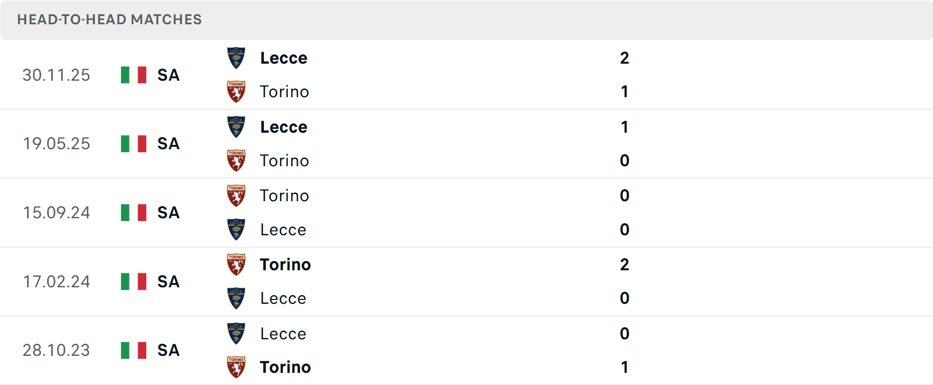 Tổng bàn thắng cả trận: 7/8 cuộc đối đầu trước đó giữa hai đội không vượt mốc tổng bàn thắng, tương tự là cả 3 trận vừa qua của Lecce.