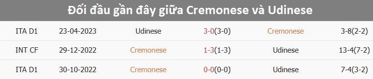 Tổng bàn thắng cả trận: 3/4 trận vừa qua của Cremonese dưới mốc tổng bàn thắng. Phía bên kia, Udinese chỉ ghi tối đa 1 bàn ở 4/5 trận mới nhất.
