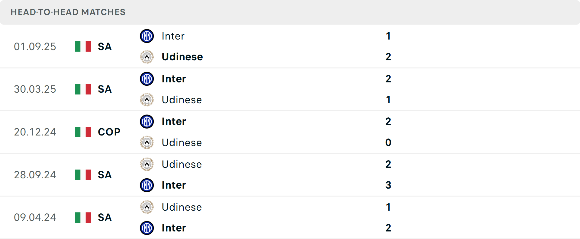 Tỷ lệ trận đấu: Udinese toàn thắng Inter Milan cả 2 cuộc đối đầu mới nhất theo tỷ số châu Á. Udinese thắng 2, hoà 1 và thua 3 trong 6 trận gần đây. Phía bên kia, Inter Milan chỉ thắng 3/7 trận mới nhất.