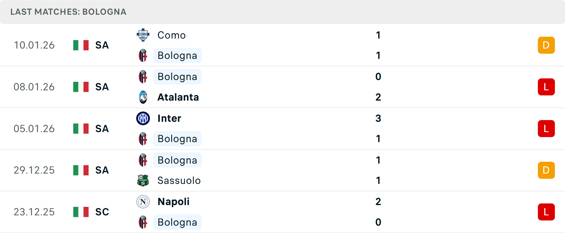 Phía đối diện, Bologna của Vincenzo Italiano cũng không khá hơn khi trải qua chuỗi 7 trận không thắng tại Serie A, rơi xuống vị trí thứ 9. Việc thiếu vắng Nicolo Cambiaghi do thẻ phạt khiến sức sáng tạo của Rossoblu bị ảnh hưởng đáng kể. Trong bối cảnh cả hai đều muốn ưu tiên sự an toàn để cắt đứt mạch thất bại, trận đấu dự kiến sẽ diễn ra chặt chẽ và thiếu đột biến. Verona cần điểm để trụ hạng, trong khi Bologna muốn giữ sức cho Europa League.