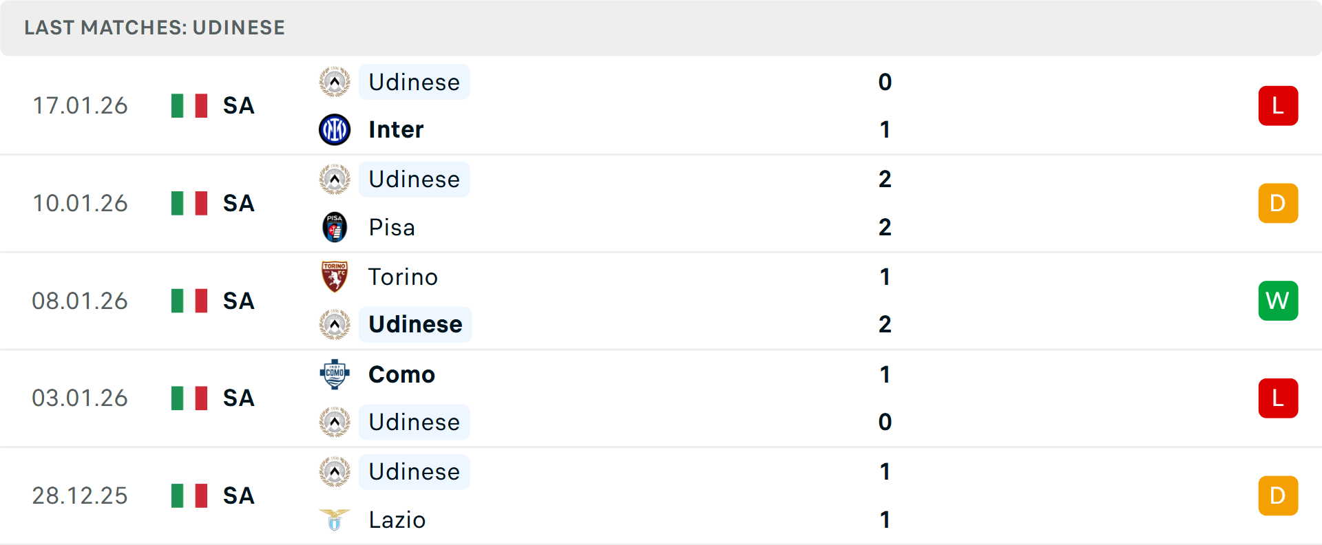Về phần mình, Udinese dù vừa thất thủ 0-1 trước Inter Milan nhưng vẫn giữ được vị trí an toàn ở giữa bảng xếp hạng với 26 điểm. Dù phong độ sân khách không quá ấn tượng, song đội bóng của Kosta Runjaic sở hữu đội hình ổn định hơn. Tuy nhiên, lịch sử đối đầu lại đang ủng hộ Verona khi họ bất bại trong 6 lần gần nhất chạm trán Udinese tại Serie A. Với hàng công cùn mòn của đội chủ nhà, một khoảnh khắc tỏa sáng duy nhất có thể định đoạt trận đấu.