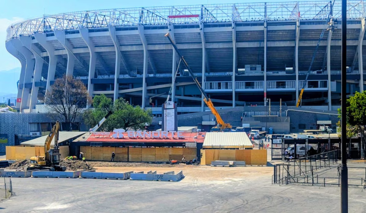 Ghi nhận tại hiện trường trên đại lộ Tlalpan, diện mạo của sân vận động đang thay đổi rất nhanh chóng. Những dòng chữ "Estadio Azteca" cũ kỹ đã hoàn toàn biến mất, thay vào đó là bảng biểu trưng "Estadio Banorte" trắng sáng đang được đội ngũ công nhân gấp rút lắp đặt. Điểm nhấn gây ấn tượng mạnh nhất chính là phần mái che mới với tông màu đỏ rực rỡ, tạo nên một bản sắc thị giác hoàn toàn khác biệt cho "Gã khổng lồ vùng Santa Úrsula".