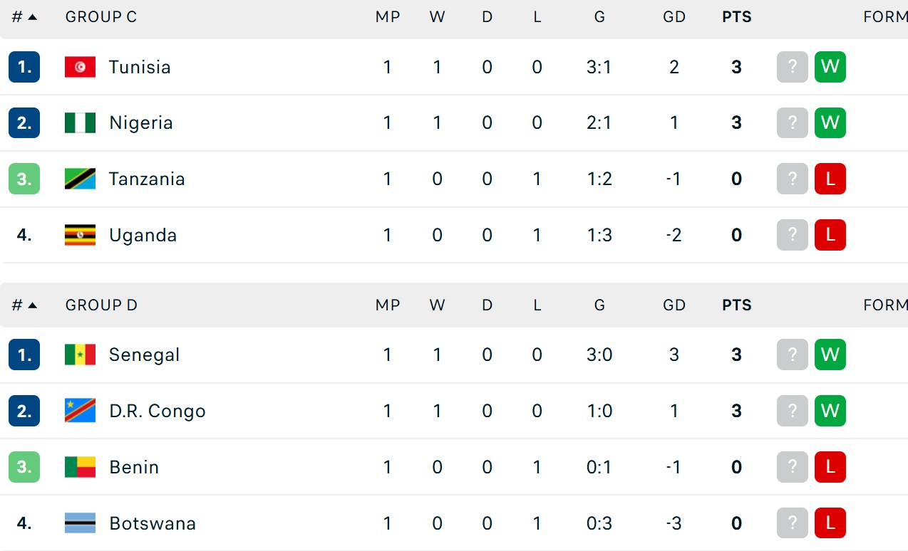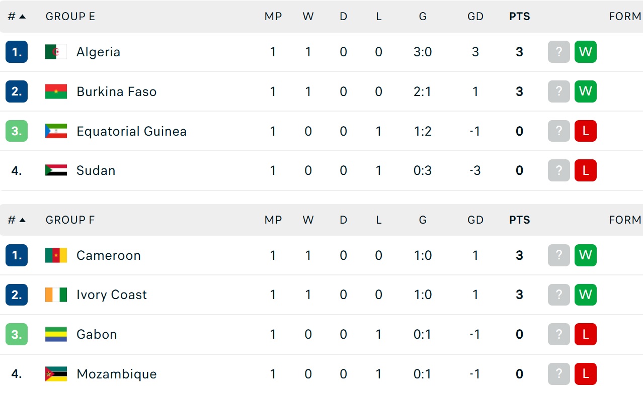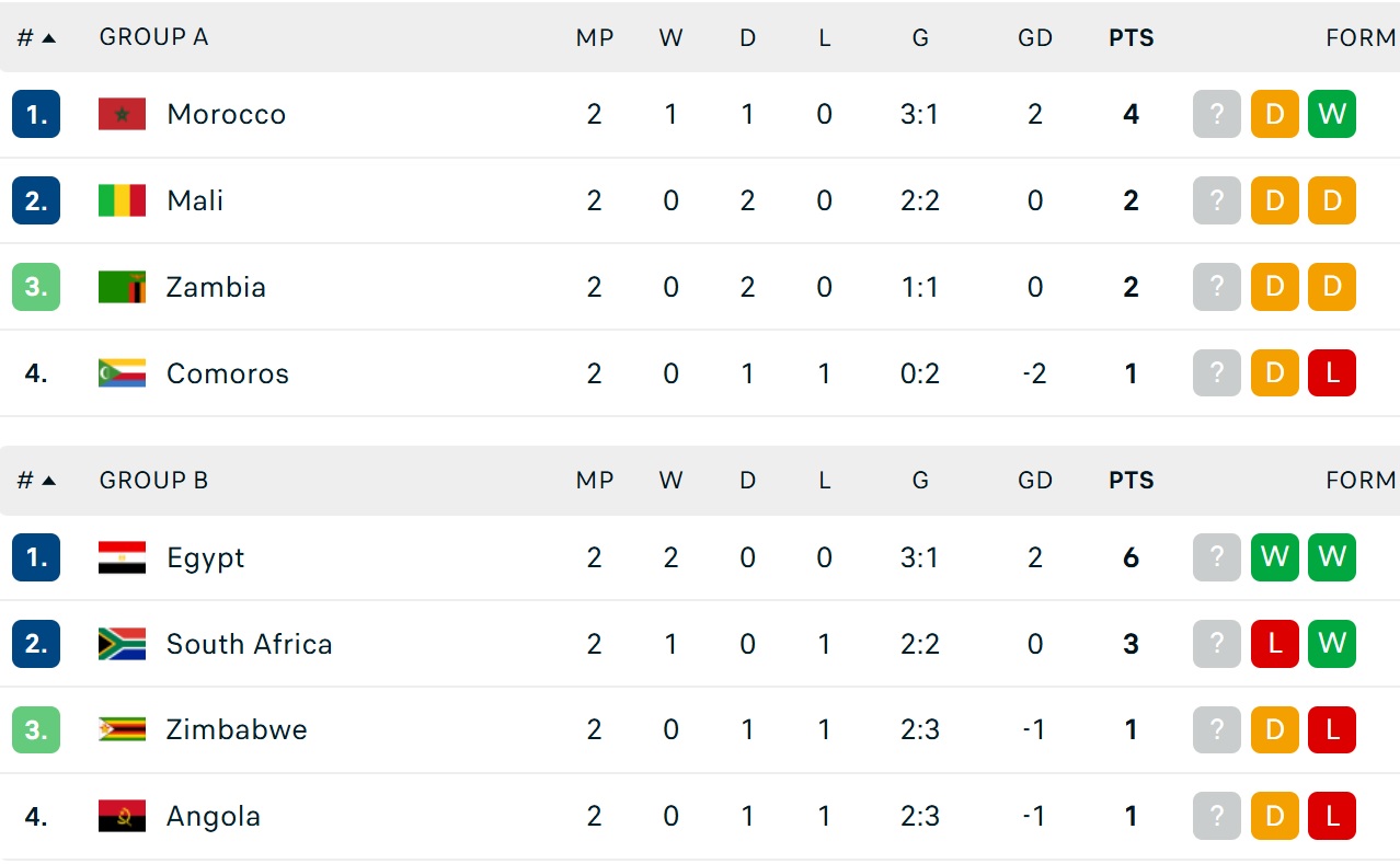 Hai đội đứng đầu mỗi bảng tại Cúp châu Phi 2025 sẽ giành quyền vào vòng 1/8, trong khi 4 đội xếp thứ ba có thành tích tốt nhất cũng đi tiếp.