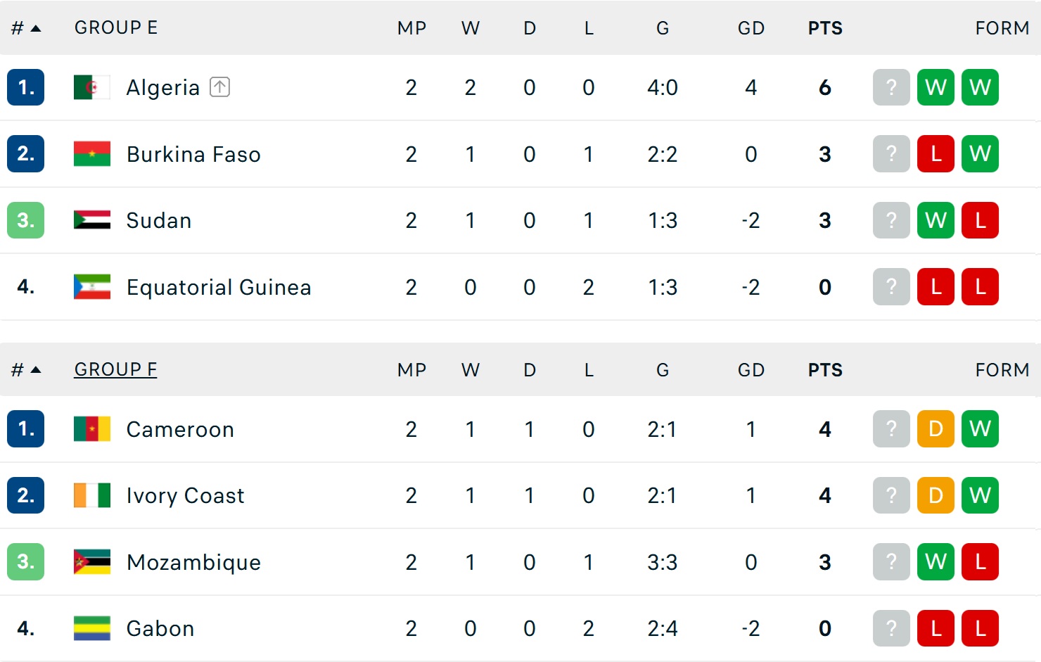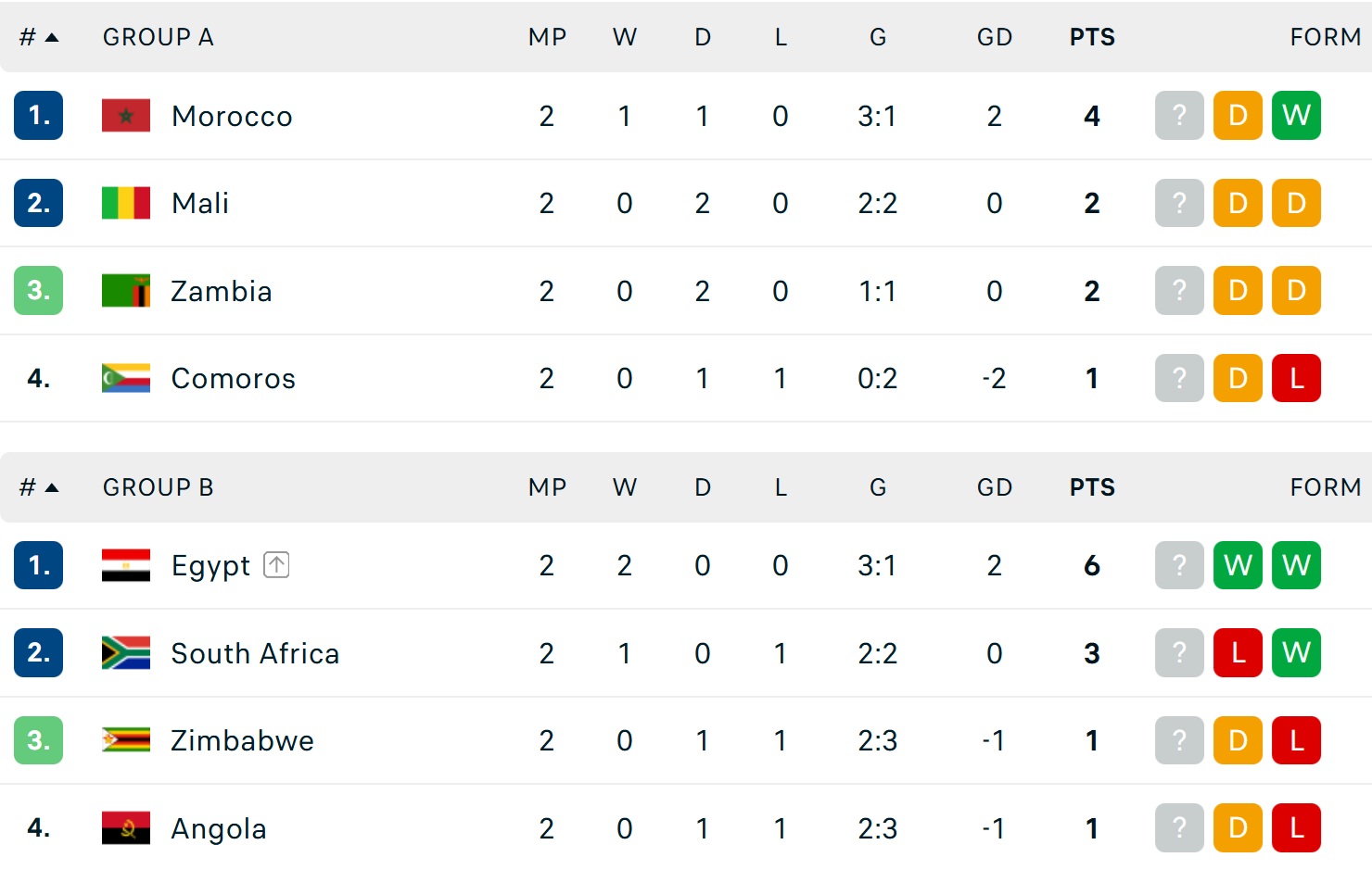 Hai đội đứng đầu mỗi bảng tại Cúp châu Phi 2025 sẽ giành quyền vào vòng 1/8, trong khi 4 đội xếp thứ ba có thành tích tốt nhất cũng đi tiếp.