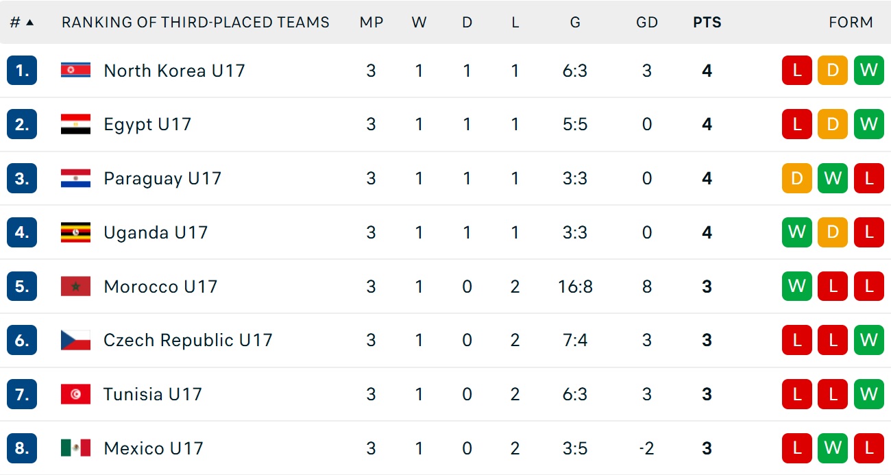 Bảng xếp hạng những đội thứ ba tốt nhất