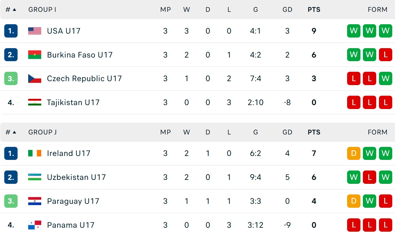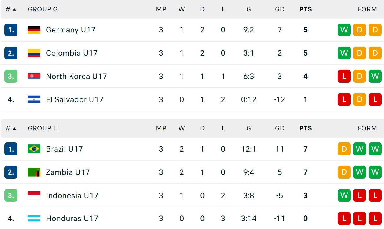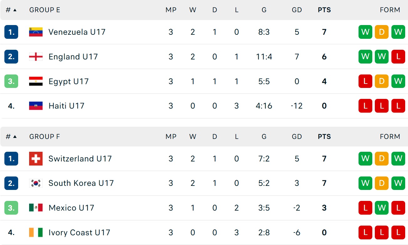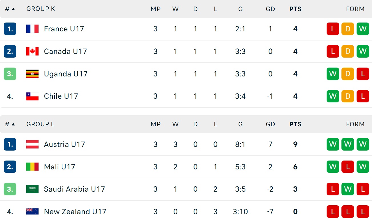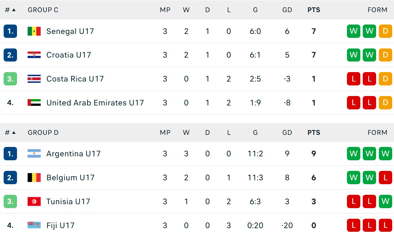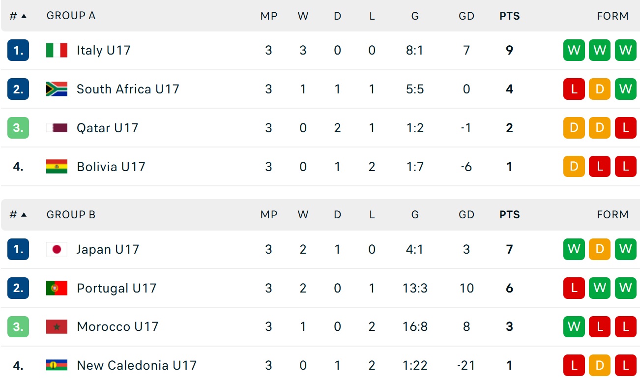 Kết quả giải vô địch U17 thế giới đang diễn ra tại Qatar với sự tham dự của những tên tuổi hàng đầu như Argentina, Brazil, Italia, Bồ Đào Nha, Nhật Bản...