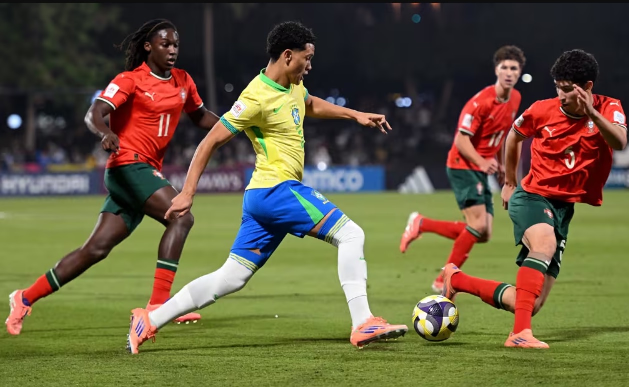 Trên chấm 11m, kịch tính đã được đẩy lên cao. Cả hai đội đều thực hiện thành công 4 cú sút đầu tiên. Tuy nhiên, thủ môn Romario Cunha của Bồ Đào Nha lại sút bóng vọt xà. Brazil đứng trước cơ hội giành chiến thắng khi Ruan Pablo bước lên, nhưng cú sút của anh lại đi trúng cột dọc.