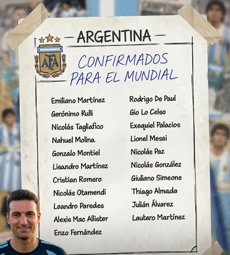 Ở tuyến giữa, các nhân tố như Rodrigo De Paul, Leandro Paredes, Alexis Mac Allister và Enzo Fernandez vẫn giữ vai trò then chốt. Đáng chú ý, những gương mặt trẻ đang có phong độ rất cao như Giuliano Simeone (Atletico Madrid) và Nico Paz (Como) cũng gần như đã cầm chắc vé. Trên hàng công, Lautaro Martinez, Julian Alvarez, Nicolas Gonzalez và Thiago Almada là những lựa chọn ưu tiên của Scaloni.