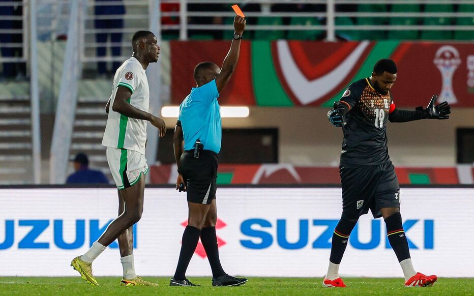 Phút 56, siêu sao Victor Osimhen bên phía Nigeria thoát xuống đối mặt với khung thành. Trong một khoảnh khắc "mất kiểm soát", Magoola đã lao ra khỏi vòng cấm và dùng tay cản phá trực diện cú sút đang hướng vào lưới của tiền đạo đang khoác áo Galatasaray. Trọng tài ngay lập tức rút thẻ đỏ trực tiếp đuổi Magoola khỏi sân, buộc Uganda phải tung thủ môn thứ ba vào thay người để duy trì đội hình. Sai lầm khó hiểu này đã đẩy "Những chú sếu" vào thế thiếu người khi trận đấu vẫn còn hơn 30 phút.
