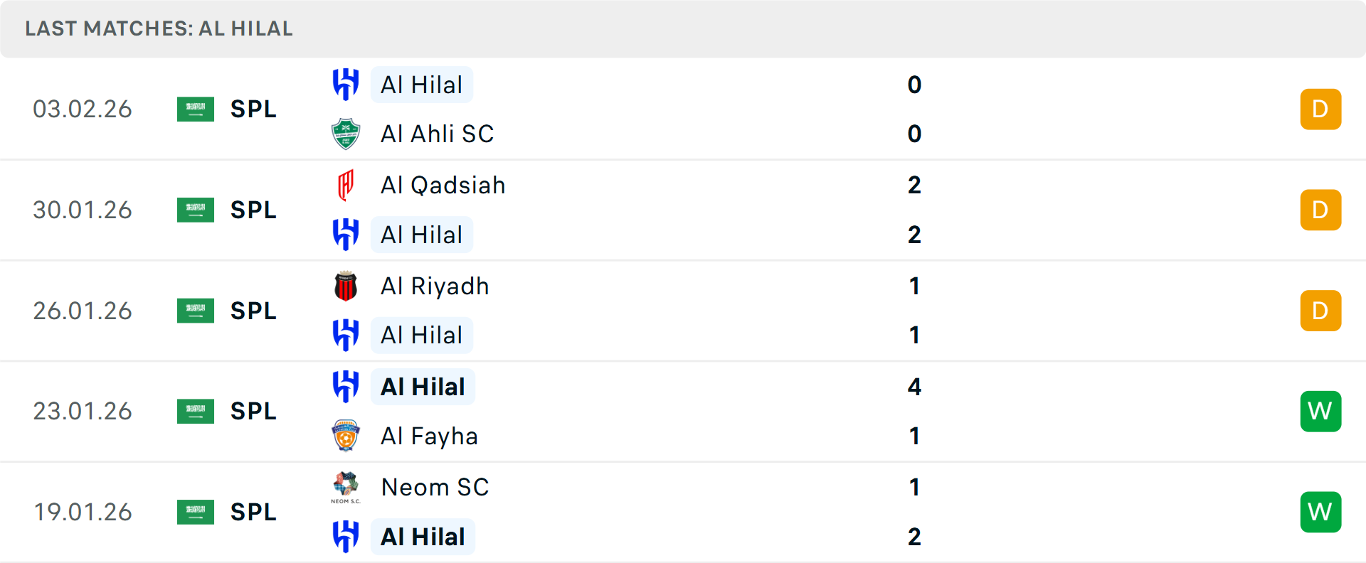 Tỷ lệ trận đấu: Al-Okhdood thắng 2/3 trận vừa qua theo tỷ số châu Á sau khi thua 5/7 trận. Về phần mình, Al Hilal toàn thua 3 trận vừa qua nhưng thắng 3/4 trận trước đó.